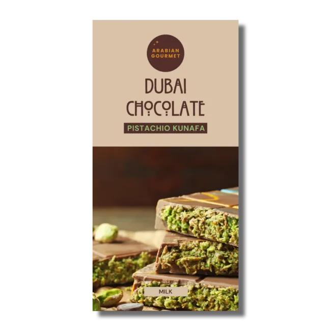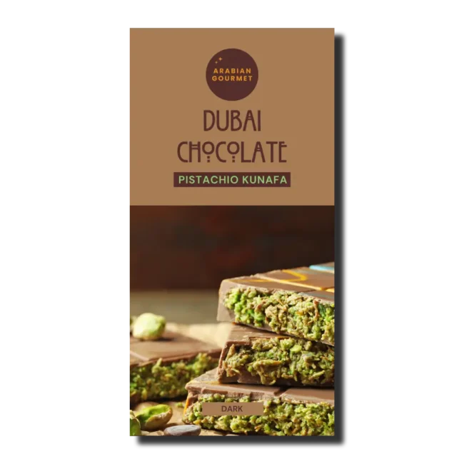Elevate your offering with Arabian Gourmet's Dubai Chocolate, a luxurious chocolate bar that pays homage to Dubai’s rich culinary heritage. Crafted with premium ingredients, each bar brings together velvety smooth chocolate, the crisp elegance of golden kunafa, and the nutty richness of premium pistachios. This unique combination delivers an unforgettable experience of flavor and texture in every bite.